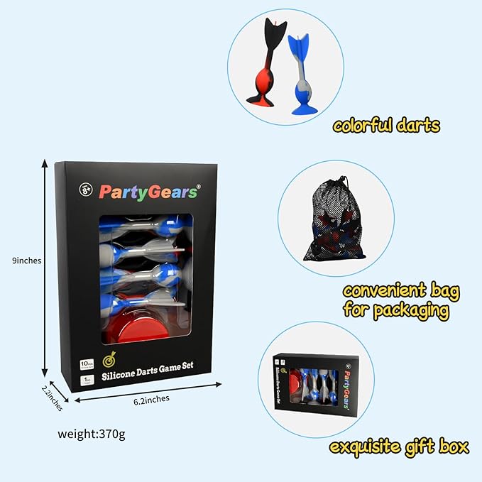 • Eco-Friendly Materials: These 10 sucker darts game sets are made of silicone. The silicone material is safe and environmentally.