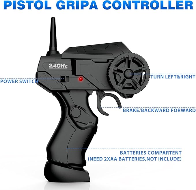 • 2.4GHz Radio Control System: The 2.4GHz technology allows multiple remote control cars to be played together without interference with each other; The pistol grip controller is easy to master, help your kids develop their social and teamwork skills