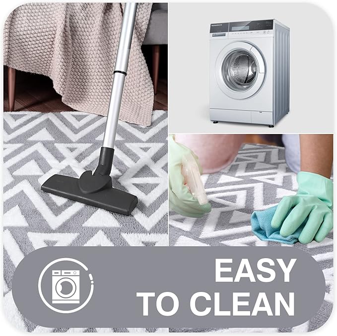 - Care Instruction - Kids fuzzy rug is made of safe and stain resistant polyester fiber, recommended to vacuum regularly (without a beater bar); For a deeper clean, wipe the stain with mild soap and water or gently machine wash then air dry at room temperature
