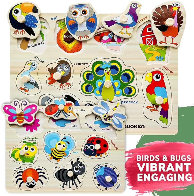 • SURPRISE YOUR KIDS: our wooden puzzles for kids 1-3 also works well as preschool puzzles for kids ages 2-4; Kids enjoy time with friends, moms, dads, grannies while playing with modern educational toys by QUOKKA