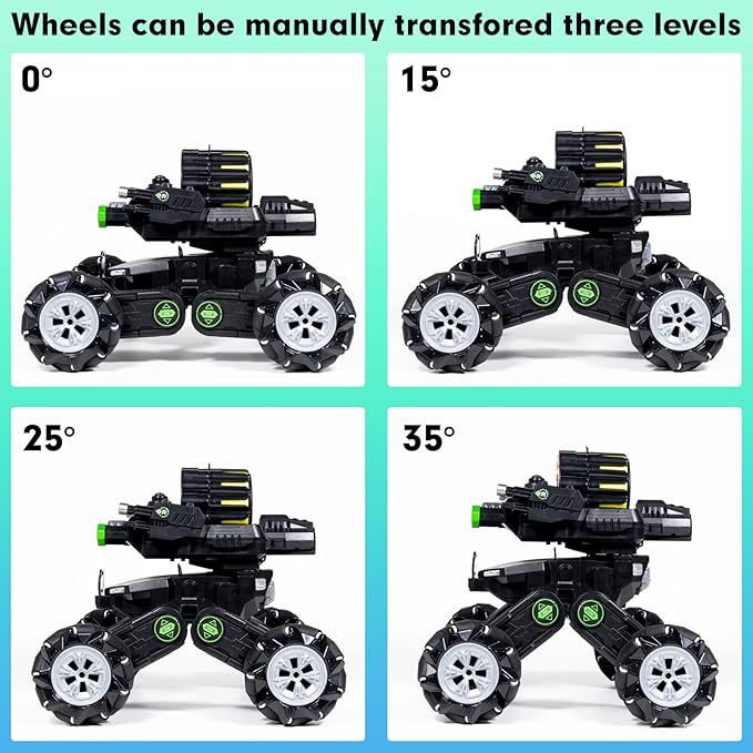 - ๐ใThrilling Stunts and Dazzling FeaturesใThe hand controlled car features an automatic demo mode to display a range of driving skills. The truck water tank is easy to assemble/disassemble, boosting playability and encouraging kids' DIY skills. Remote control tank for boys 8-12 offers various functions such as forward, backward, 360ยฐ spins, lateral drifting, water bullet firing, competitive mode, music LED lights, and a rising fortress.