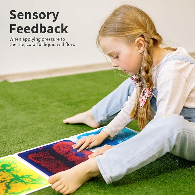• Interactive Sensory Effects - The liquid and floating objects inside the tiles create mesmerizing visual effects when touched, stepped on, or pressed. Kids can enjoy watching the colorful liquid and objects shift and swirl, enhancing their sensory experience
