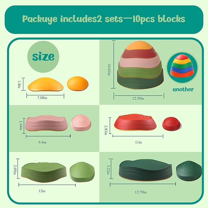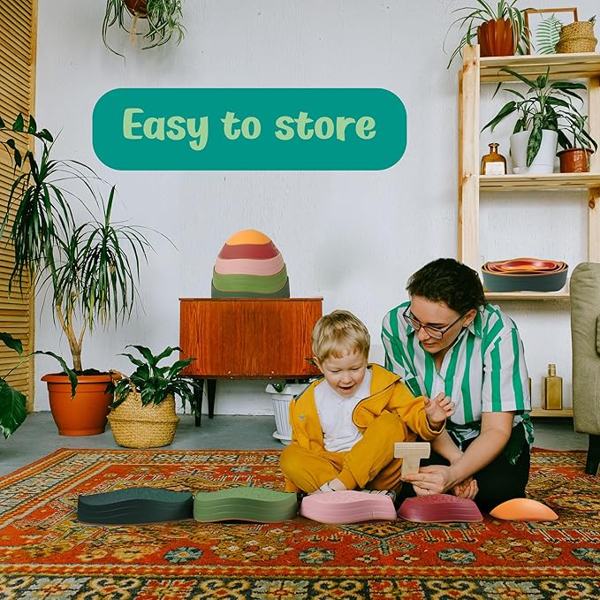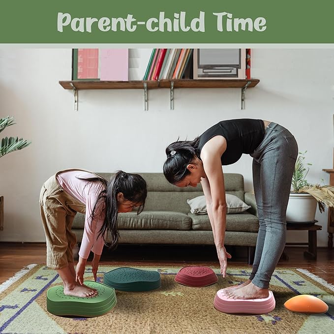 • FUNCTIONAL DESIGN & EASY TO STORE: Kids can play with their friends or family members on balance stepping stones which are sturdy and can support up to 220lbs of weight. They are also easy to wipe clean and can also be stacked together for easy storage when not in use