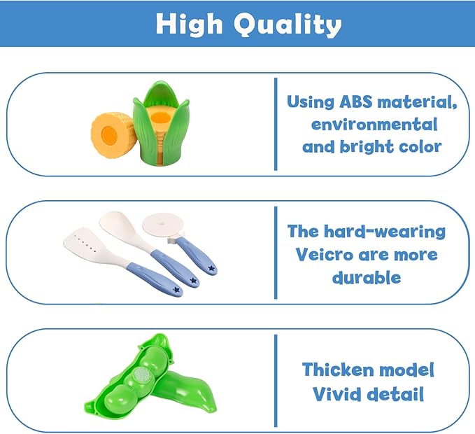- 【Safe & Sturdy Material】Our cookware toy kitchen sets was made of ABS materials, they are drop-resistant, easy to clean without any BPA or harsh materials to ensure they are both safe and sturdy for everyday play. Our knife set is not easy to break off, both safe and made to handle daily space for kids