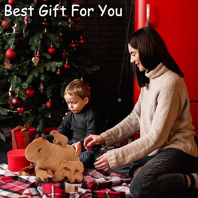 SQEQE Capybara Mommy Plush with 4 Cute Babies Capybara Stuffed Animals, Super Soft Plushie Stuffed Cotton Plushies Animal Toy Gift for Boys and Girls