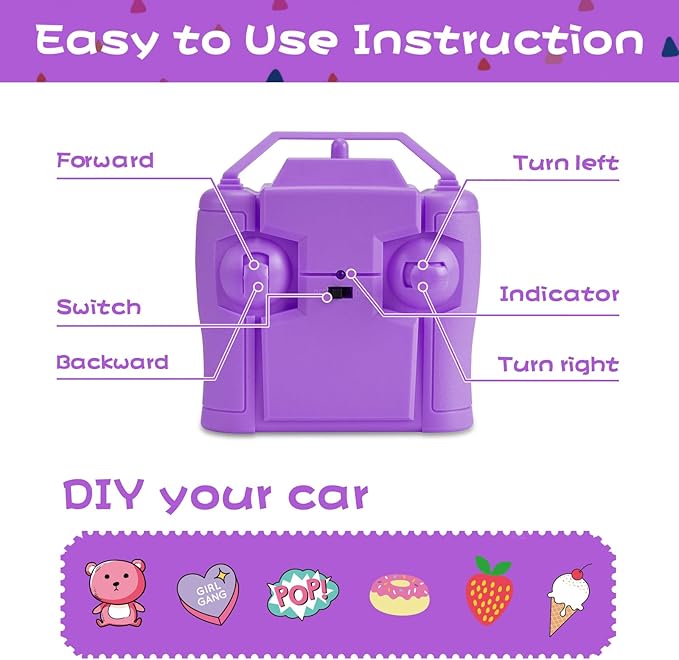 • 【NQD New Exterior Design】This girl toy has brand new innovative exterior pink shell, simulation convertible carriage and rubber tires, bringing unparalleled visual experience to girls 3-8 years old. Comes with delicate sticker, so kids DIY their rc cars