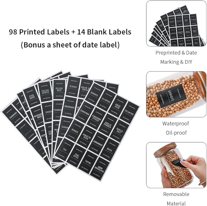 • What You Get - This set include 112 pcs labels (98 printed labels + 14 blank labels) and a marker for you to DIY.