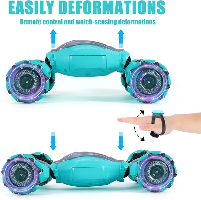 • 【Gesture Sensor Control & 2.4G Remote Control】Our rc stunt car is upgraded with 2 control methods: sensor watch control and remote control. The remote control method is suitable for beginners. Watch gesture controllers are suitable for late gamers and advanced professionals. It is easy to change and play, adding a unique and interactive experience for users.