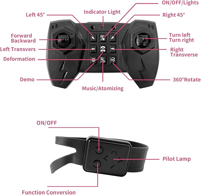 • 【Smart remote control mode】: The remote control adopts 2.4GHZ transmission technology, which is sensitive to control and ultra-long distance control. And yet another amazing remote control watch. Wear the watch on your hand, change your posture, and the deformable car can sense your posture changes, drive and change at will.