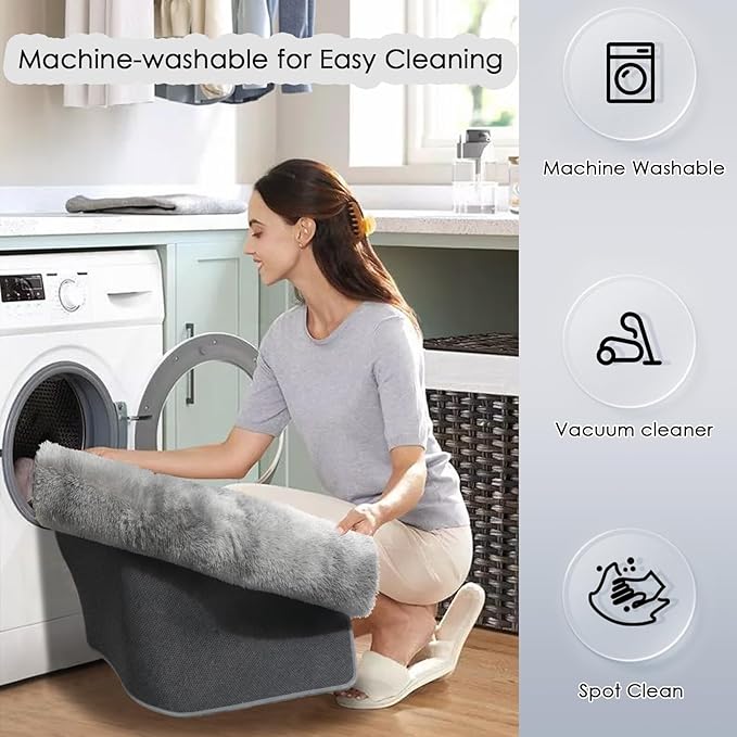 - How to Clean: We suggest you vacuum or wipe it, or hand wash and air dry to make this area rug fluffy and have a long service life. If you are tired of tedious cleaning, this furry rug is machine-washable for easy cleaning to save you time and energy