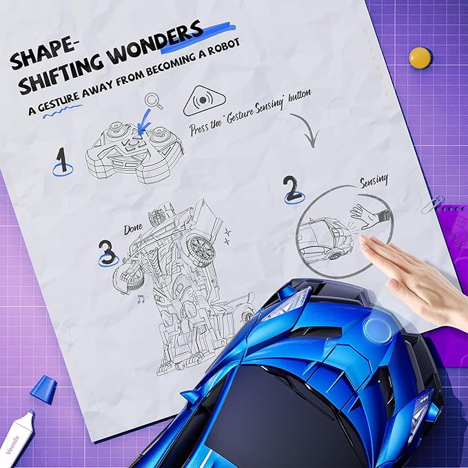 - ใ๐ฅ๐ถ๐ฐ๐ต ๐ฎ๐ป๐ฑ ๐๐ถ๐๐ฒ๐ฟ๐๐ฒ ๐๐ฎ๐บ๐ฒ๐ฝ๐น๐ฎ๐ใThis deformable remote control car adopts 2.4GHz frequency band, allowing multiplayer to operate their toys simultaneously without interference. One-click deformation, gesture sensing deformation,automatic demonstrations, accompanied by music and light, enhancing the interactivity, creativity and promoting kids' social interaction and friendly competition.