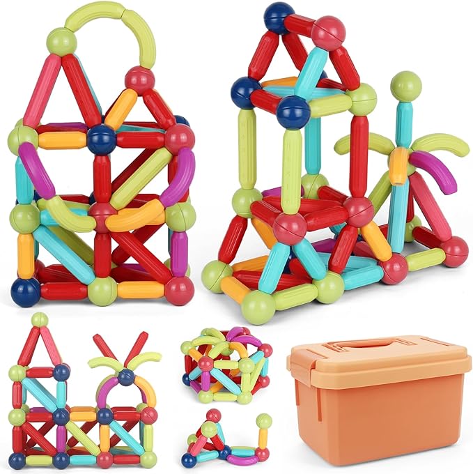 Magnetic Building Blocks Toy, Educational Magnetic Building Sticks, Toddler Toys, Magnet Toy Set, Montessori Toys for Boys Girls, Gift Set for Kid’s Early Educational Learning