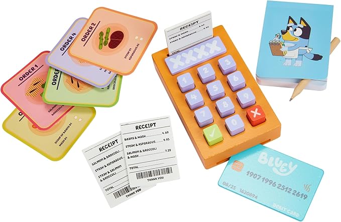 Bluey – Tabletop Restaurant – 32 Piece Wooden Roleplay Toy with Cutlery & Pretend Food Accessories for Kids – FSC-Certified Material – Fun Imaginative Kit for 3 Years and Up