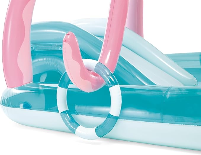• ✔ SPECIFICATIONS – This colorful play center is perfect for kids ages 2+; the inflated size is 7ft 8in x 6ft x 4ft 11in and can hold up to a 61-gallon water capacity; designed to drain easily, with the convenient drain plug and repair patch included