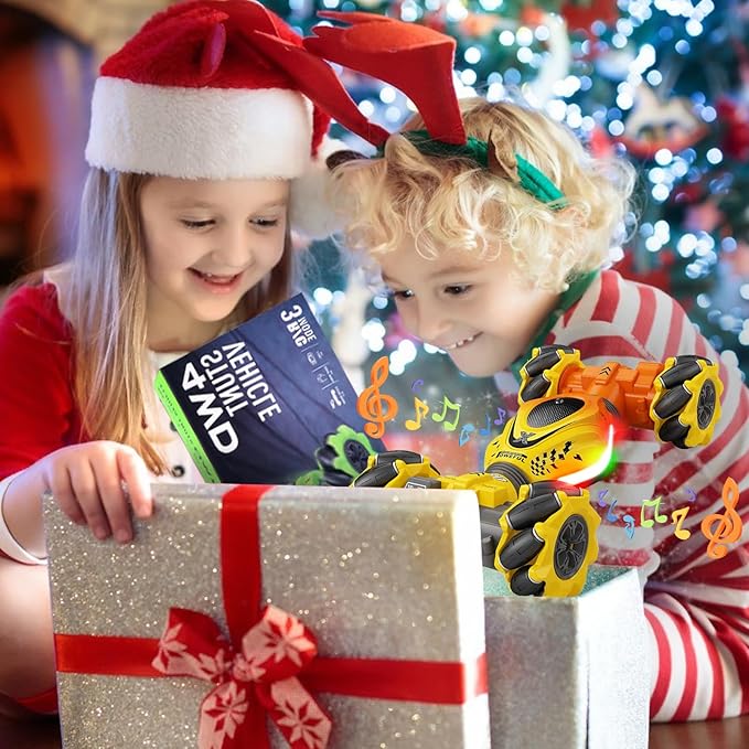 RC Stunt Car, 2.4Ghz Remote Control Sensor 4WD Offroad Car, High Speed Drift 360° Rotating Twist Toy Car with Music Lights, Ages 6-13 Boys Girls Birthday