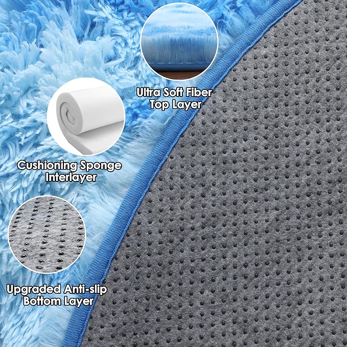 - [ Upgraded Non-slip Backing ]: Compared with the general rugs, its upgraded bottom has more and larger durable rubber dots that provides superior grip on hardwood, tile, or laminate floors. The regular distribution of anti-slip rubber particles on the back firmly fits the floor and prevents the shaggy rugs from moving.