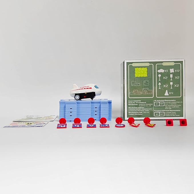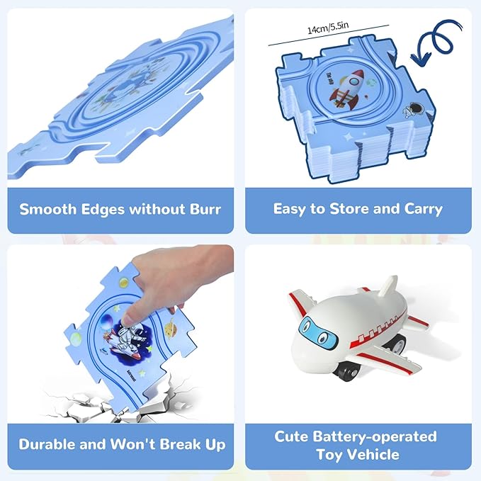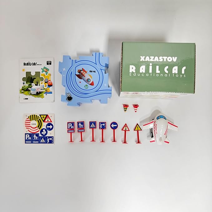 - Plastic Floor Puzzles for Kids: This kids toys set includes 12 puzzles pieces, 12 road signs, 1 instruction manual, 1 airplane shaped vehicle(1 AAA battery required, not included); Toddler boys need to assemble the puzzles pieces to run the toy car