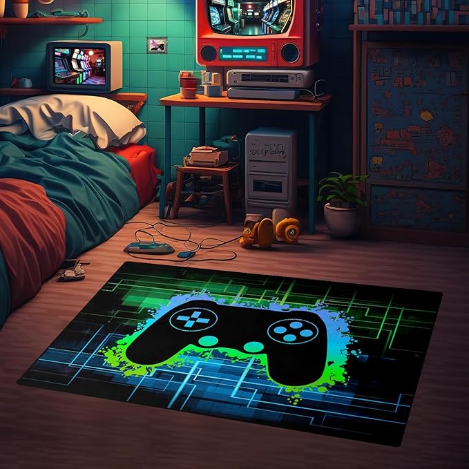 • Great Gift:The design is inspired by Game,cool graphics make your room unique and fun. The gamer rug is the gift for your friends and family,gamer rugs for bedroom boys especially for Kids gifts.for the Christmas,Birthday,Children's Day,and other important festivals. gaming decor for boys room