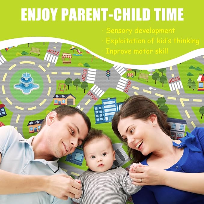 - 【Kids Carpet Design】 Our kids car rugs are made of special yarns with a soft and comfortable surface, suitble for crawling, playing, or even napping. The kids road rugs are printed with American city and road-themed patterns. If your child is always on the move and can't sit still, this car carpet for kids endless hours of exhilarating happy playtime.