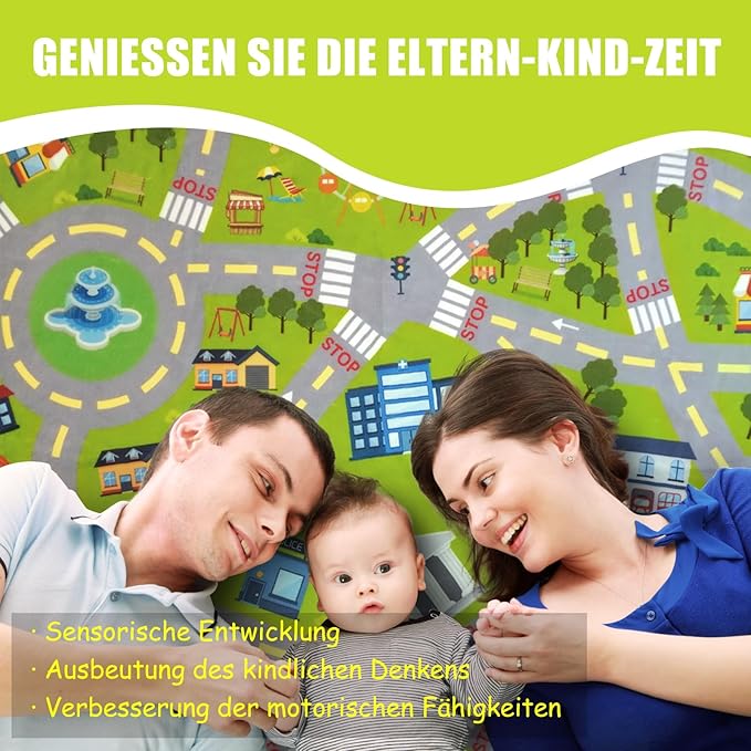 - 【Kids Car Rug Design】 Our kids car rugs are made of special yarns with a soft and comfortable surface, suitble for crawling, playing, or even napping. The kids road rugs are printed with American city and road-themed patterns. If your child is always on the move and can't sit still, this car carpet for kids endless hours of exhilarating happy playtime.