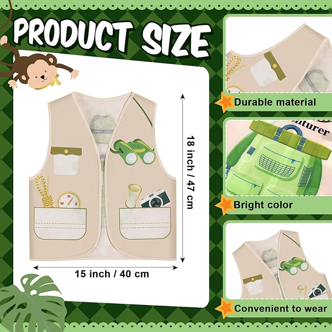 • Explorer Costume: you will receive 12 explorer vests, sufficient quantity to meet your use and replacement needs in daily life and explorer parties, allowing more children to participate in explorer parties and experience the fun of the party