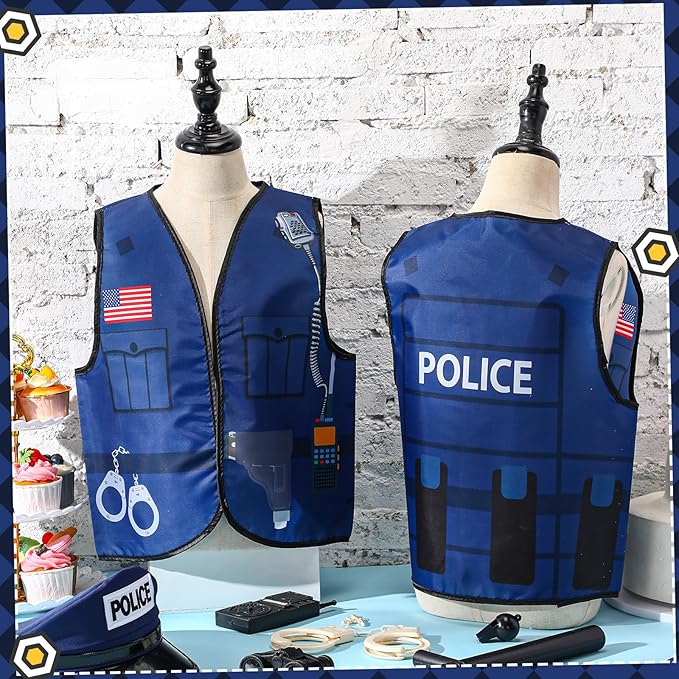 • Suitable Size: policeman costume vest measures 18 x 15 inches/ 47 x 40 cm, suitable for most children's sizes; No zipper, unisex business attire, easy to put on and take off, make feel uncomfortable, give a good fit wearing experience