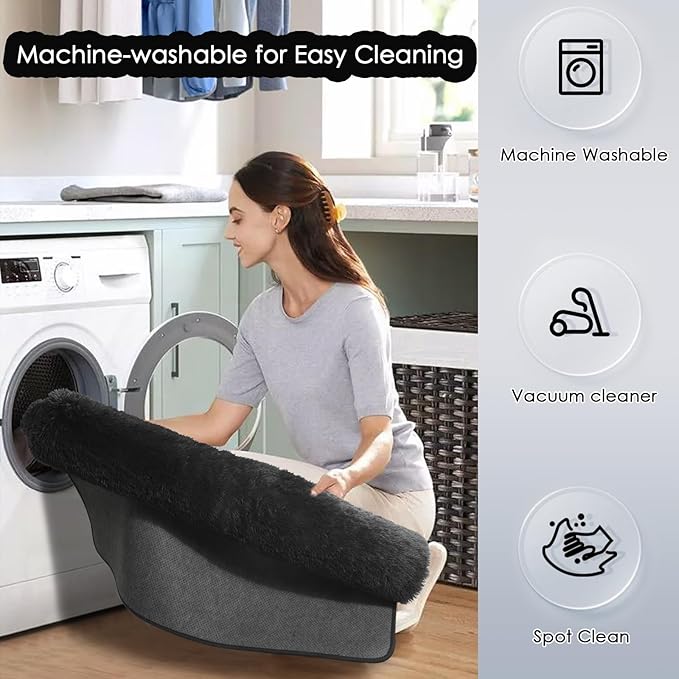 - How to Clean: We suggest you vacuum or wipe it, or hand wash and air dry to make this area rug fluffy and have a long service life. If you are tired of tedious cleaning, this furry rug is machine-washable for easy cleaning to save you time and energy