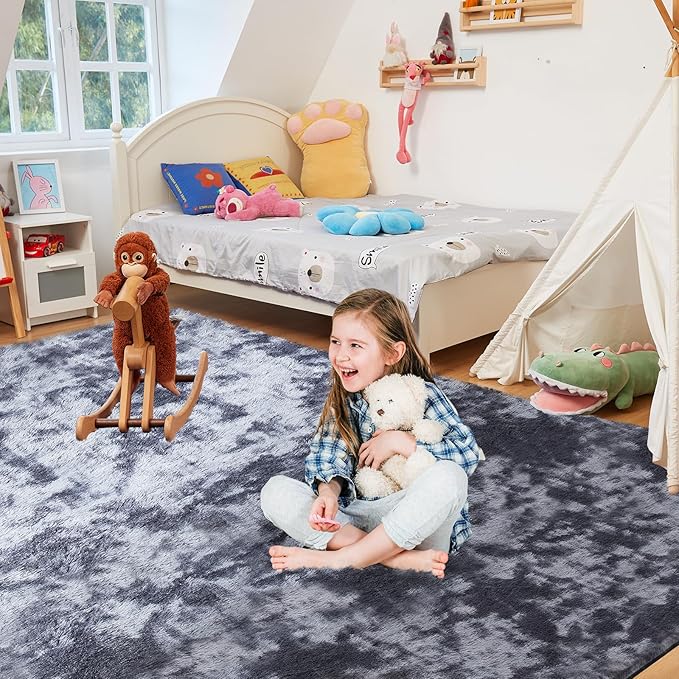 Ultra Soft Rug for Living Room, 6X9 Fluffy Shag Area Rug for Bedroom, Modern Shaggy Carpets Fuzzy Rug for Teens Dorm Nursery Home Decor Aesthetic, Upgrade Anti-Skid Durable, Tie Dye Black and Grey