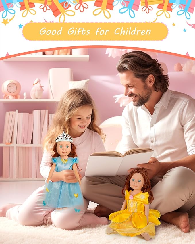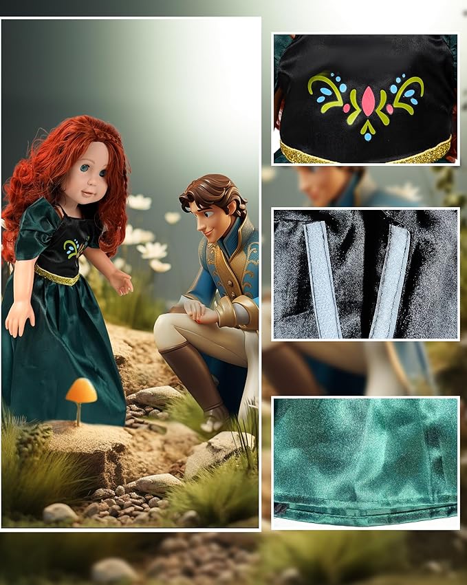 • What you Get: Many kids are interested in princesses, so having a few outfits from their favorite movies is sure to excite them. Now,this 18 doll clothes can make your dream come ture. You will get the 6pcs different princesses dress with 2 crowns.Including Elsa,Cinderella,Tiana, Bella,Merida.(Please notice: no doll inluded)