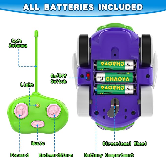 • Perfect Gifts For Toddlers: Our remote control car for toddler complete with engaging music and sound features, two interchangeable unicorn figures, and two remote controls with forward and reverse motions. The LED flashing headlights bring more fun to boys and girls age 2 3 4 5.