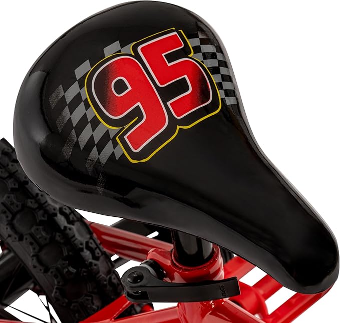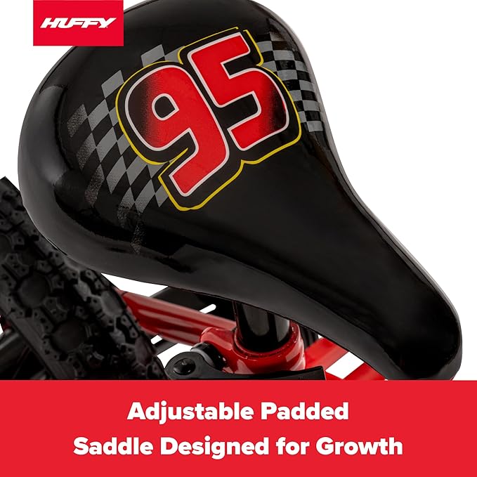 - DURABLE & COMFORTABLE: Steel frame, wide black tires, padded saddle, and Cars-themed grips create a sturdy and fun ride.