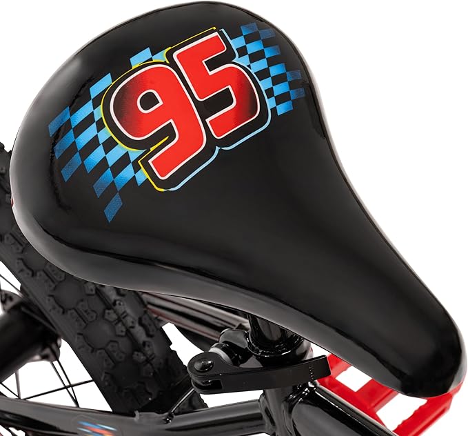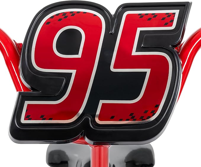 - RACE-READY CARS STYLE: Glossy black frame with hot red accents, Lightning McQueen 3D plaque, and bold graphics inspired by Disney Pixar Cars.