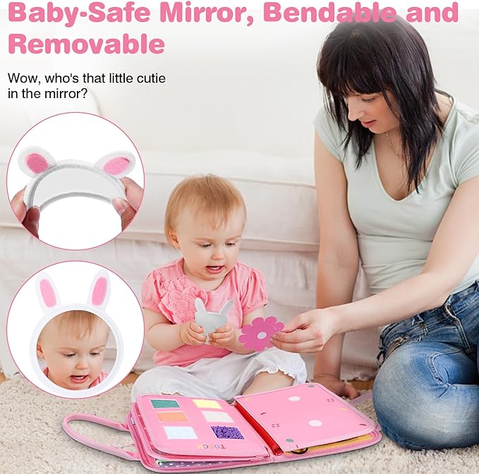 Busy Board for Toddlers 1-4, Sensory Board Travel Toys Gifts for 1 2 3 4 Year Old Girls Boys, Montessori Toys to Learn Fine Motor Skills, Educational Activities Busy Book for Airplane Car (Pink)