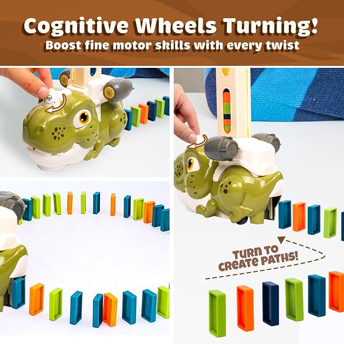 Atlasonix Domino Train, Domino Train for Kids, Automatic Set for Kids, 3 Year Old Boy Gift, Montessori Toys, Fun, Educational Toys, Birthday Present for 3-5 Year, 220 Blocks Dinosaur