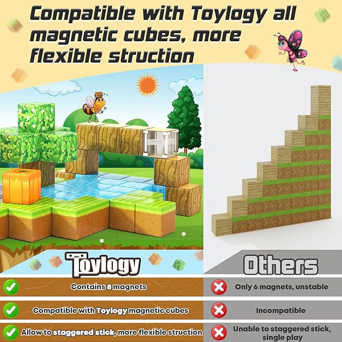 - 【BRING PUMPKIN MINE MAGNET WORLD TO LIFE】 Step into the thrilling pumpkin themed blocks of magnets! Construct a pumpkin fortress to protect kingdoms and battle monsters with role-play fun. Experience the endless construction possibilities of the pumpkin house, unleash a dream world of creativity. Toylogy blocks with 8 magnets, more stable, and flexible compared to other 6 magnets inferior blocks, and compatible with other 1IN blocks , also an expansion set that kids can add to expand your existing mine magnet world.