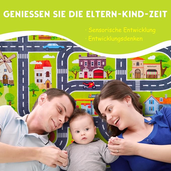 - 【Kids Car Rug Design】 Our kids car rugs are made of special yarns with a soft and comfortable surface, suitble for crawling, playing, or even napping. The kids road rugs are printed with American city and road-themed patterns. If your child is always on the move and can't sit still, this car carpet for kids endless hours of exhilarating happy playtime.