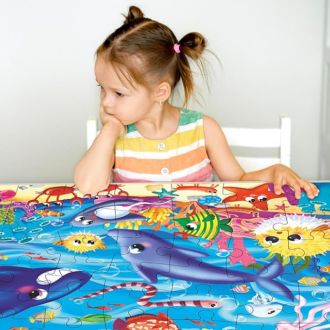 • GIANT FLOOR PUZZLE WITH UNIQUE PIECES: Almost 50-piece puzzle expands to 2x3 feet, creating a large floor puzzle experience; jumbo puzzles ensure every piece fits perfectly with no mismatches, promoting confidence and keeping kids engaged longer