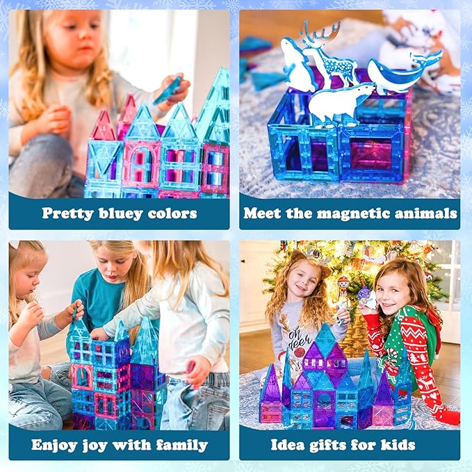 - BUILDING ICE CASTLE: Ice toys capture your favorite hobby, and kids can use magnet tiles to build castles, to pretend play princess and prince. All pieces are compatible with and complementary to all other sets. It is a fun addition to your toys and a suitable toys for girls and boys ages 3-8