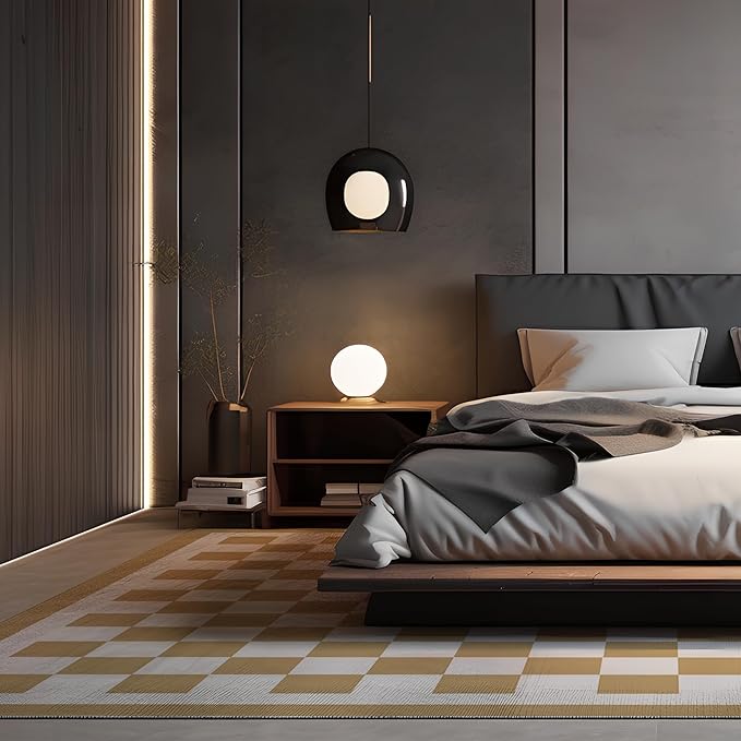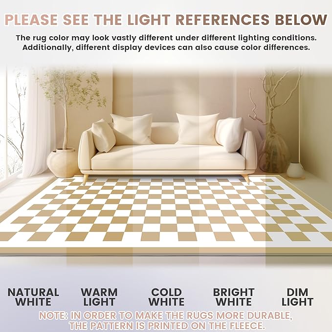 Washable 9x12 Checkered Area Rug for Living Room, Tan Brown Checkerboard Modern Boho Large Rugs, Ultra Thin Low Pile Lightweight Indoor Carpet with Non-Slip Backing for Bedroom Kids Nursery Play Room