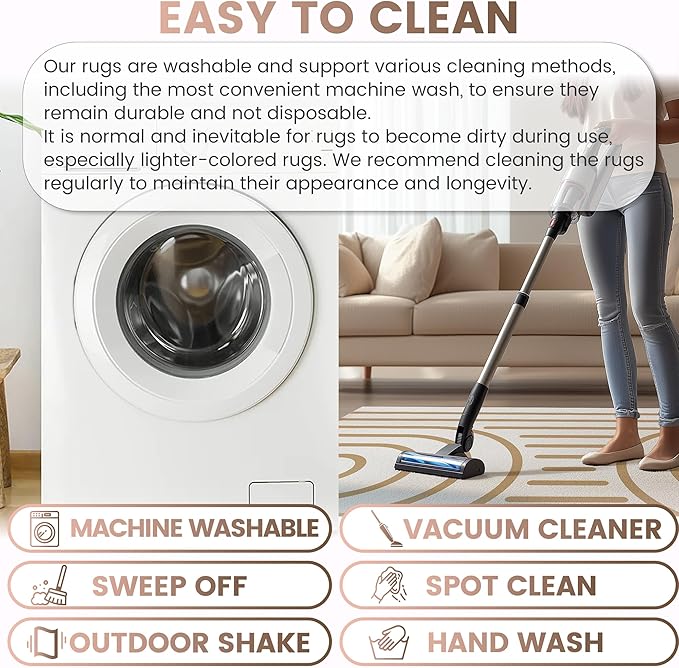 - 【NON-SLIP BACKING & ENDURING】The bottom of this large rug is made of Cotton+TPR rubber backing to help the living room rug stays securely in place. Reducing the risk of tripping and protecting your floors from scratches. And it’s designed for high traffic areas, sturdy reinforced overlock edges.