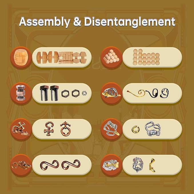 • Brain teasers benefit, engaging and fun for most ages, educational puzzle toys set will challenge your intellect by stimulating amazing creativity, and understand the inter structure. Mind will be sharpened enough to develop their problem-solving capacity through reasoning, development of mental stamina, and boosting their self-confidence, improve IQ and EQ.