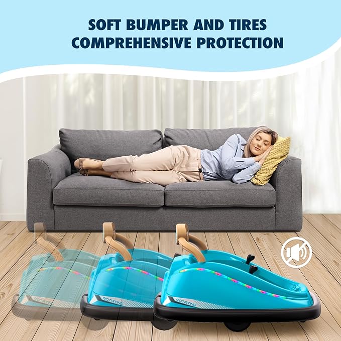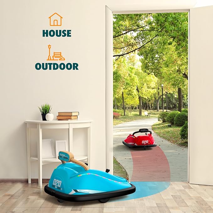• GIFT FOR BOYS&GIRLS: This bumper car is a perfect addition to interactive and group games. Kids can bump each other for more riding fun. And this bumper vehicle has a music player, LED flashlights, and a horn suitable for kids to ride even at night. It is a perfect gift for boys and girls.