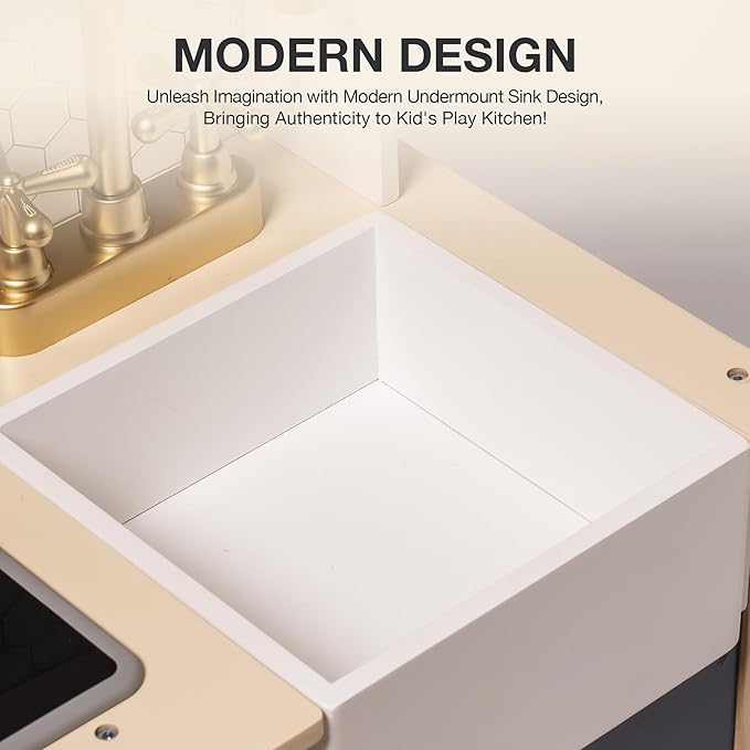 - [Focuses on Kids’ Safety]: We prioritize your child's safety. Our kitchen playset is constructed using high-quality wood and MDF, built to withstand the rough and tumble of kids' play. All components are designed with kids and toddlers in mind, ensuring a user-friendly and safe experience.