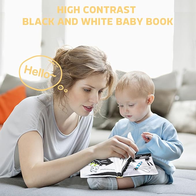 - 【COGNITIVE ENLIGHTENMENT NEWBORN TOYS】Our black and white baby book has 7 different colors and 8 different patterns, made of non-toxic, odourless premium fabric and have a more sturdy structure, washable colorfast, reusable, you don’t need to worry about babies biting or tearing the soft baby books. It's a great 0-6 months newborn brain development toy, can stimulate early visual development and brain development in newborns.