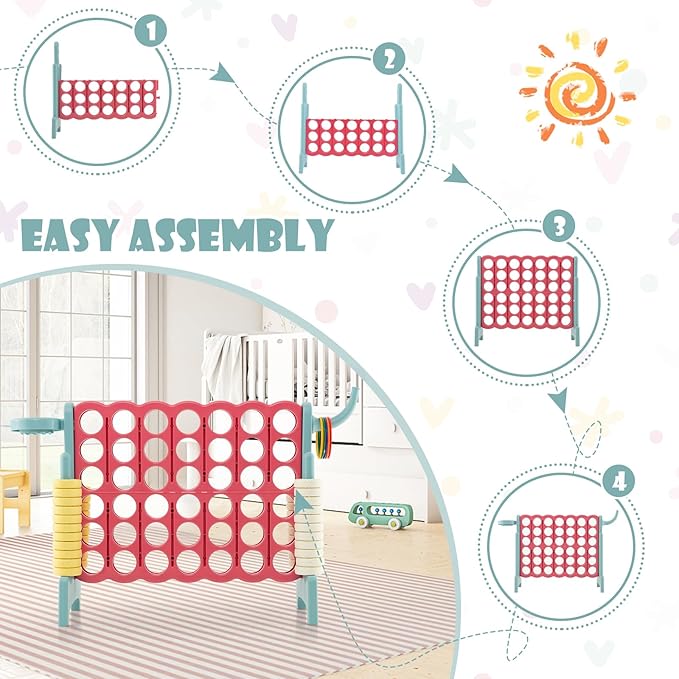 - 【Easy Assembly & Convenient to Carry】: Our jumbo 4-to-score game can easily be set up or taken apart to take to your next party. You can do all the assembly in just a few minutes without using any tool. In addition, made of high quality plastic materials, the whole game set only weighs 10lbs, lightweight to carry out for outdoor use.