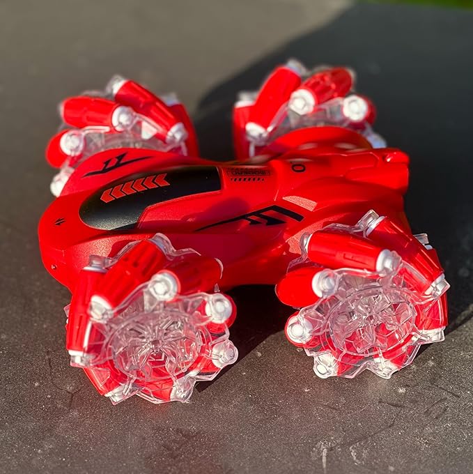 • 【GOOD STARTER REMOTE CONTROL STUNT CAR】This is a really cool hand controlled rc car that's fun for kids of all ages, very easy for the boys to drive. The remote control car is very tough and durable. With its double-sided driving design and anti-slip tires, 4WD, can easily adapt to a variety of terrains. It conquers everything- wooden floor, sand, rock, grass and so on