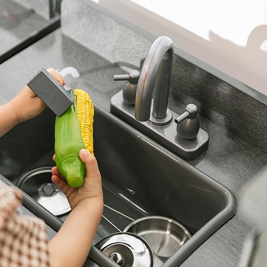 • Kitchen Playset: Cleaning dishes has never been more fun with the wooden sink designed to inspire imaginations during pretend play in a classroom or playroom; practice skills like scrubbing and drying