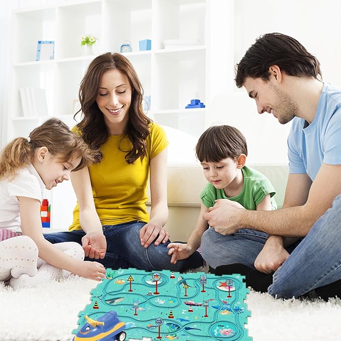 - 【Upgrade Configuration: Include 25pcs Parts】:This kid's puzzle set includes 12 puzzle pieces, 12 road signs, 1 toy car (1 AAA battery required, not included). Kids need to assemble the puzzle pieces in a certain to allow the plane to follow the track. Our jigsaw game features a colorful, vibrant map with tons of possibilities! Amazing games for kids indoor games & lovely toys for kids with track big size for group fun.