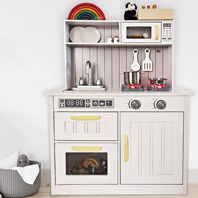 - Geat gift- Not only provides fun playtime for young children, but is also important for education. The perfect play kitchen for 3+ year olds is ideal for creative role play toy and the perfect birthday gift for your daughter and son.