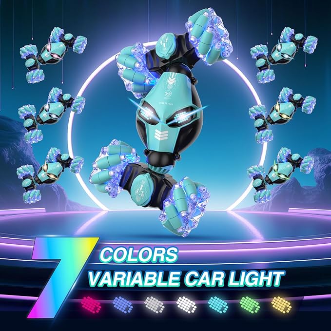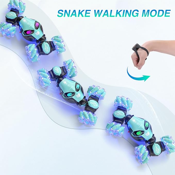- 360° Rotation Toy Glove RC Car & Light Music: The gesture sensing twist racing car has all-direction tire can move in all directions: forward/backward, turn right/left, right/left drift, achieved 360°rotation & sideways drift with cool LED light & music
